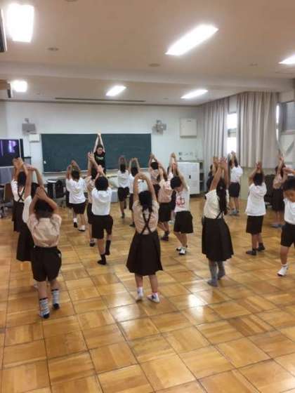 昨日、来週から始まる水泳学習に向けて、水慣れ体操の練習をしました。
