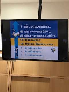 ガス・水道・電気(ライフライン)が止まってしまったら、どんな暮らしになるのかを冊子で学習し、簡易スリッパを作る体験もしました。