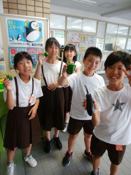 緑化委員会が栽培している野菜が収穫されました。みんなが同じようにもらえるように、ジャンケンしました。もらえなかった人は次回ということになりました。