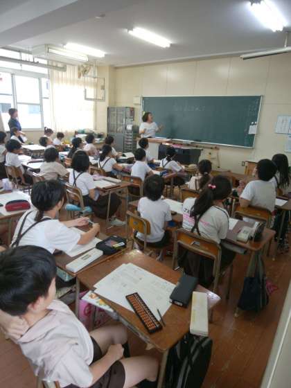 4年は1,2時間目1組、3,4時間目2組が、そろばんの学習をしました。大きい数や小数点のある数のそろばんで計算しました。