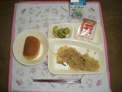 和風焼きそば きゅうりのゆず風味 黒糖パン(小) 牛乳 でした。