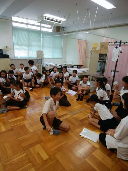 けがした人等の救護にあたります。どんなことをするのか、自分なりにメモを取っています。