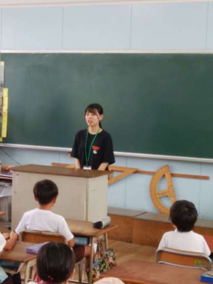 本日から10月1日まで、教育実習に来られた大阪信愛学院短期大学の石村睦美さんです。主に2年1組で活動します。早速子どもたちは、手を挙げて石村先生に質問していました。