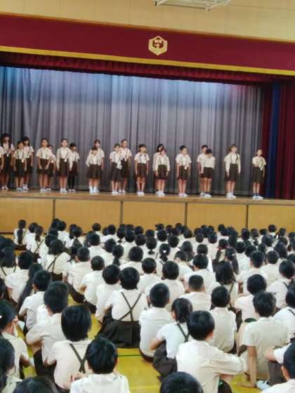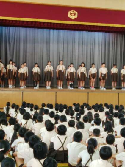 今日の児童集会は後期代表委員の自己紹介がありました。みんな大きな声でしっかり発表できました。