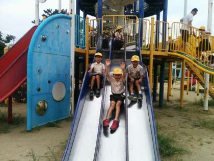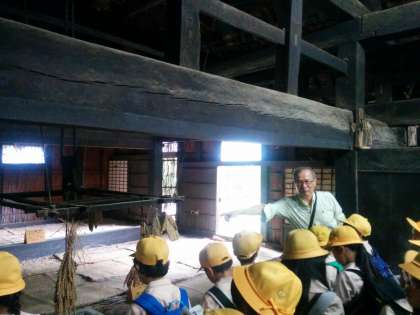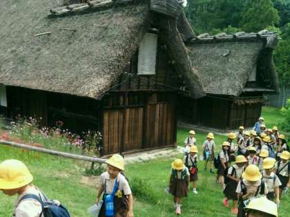 日本民家集落博物館で、昔の家屋や道具を実際に見て学習し、こどもの楽園では、昼食をとった後、遊具で元気に身体を動かして遊びました。