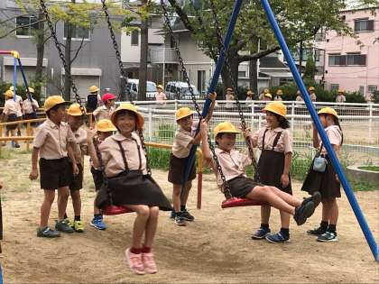 海の後は登山です。日本で一番低い山、天保山の山頂に、全員無事登頂しました。登山の後も、まだまだ公園で遊びまわるくらい元気いっぱいです。