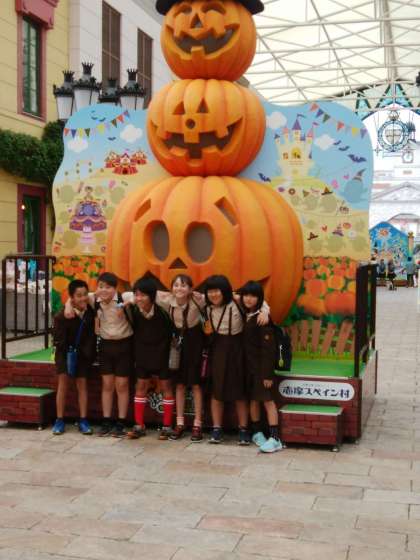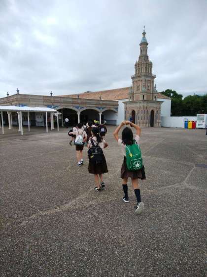 予定通りスペイン村に到着しました。全員元気です。まずグループで記念写真を撮りました。