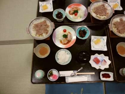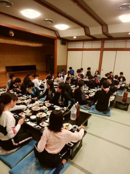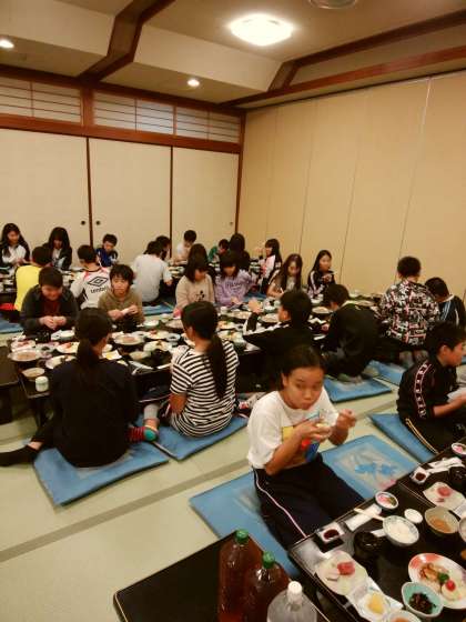 いよいよお待ちかねの夕食です。しっかり食べています。全員元気です。