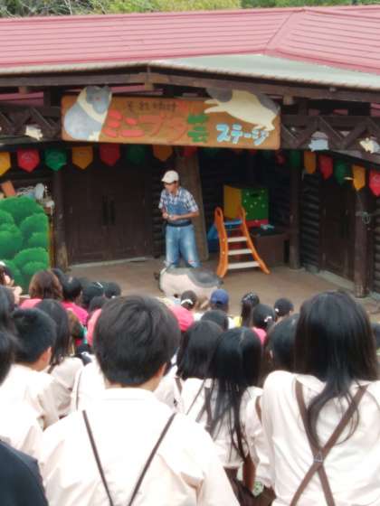 モクモクファームに到着しました。ミニブタの芸を見てから昼食です。