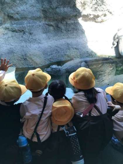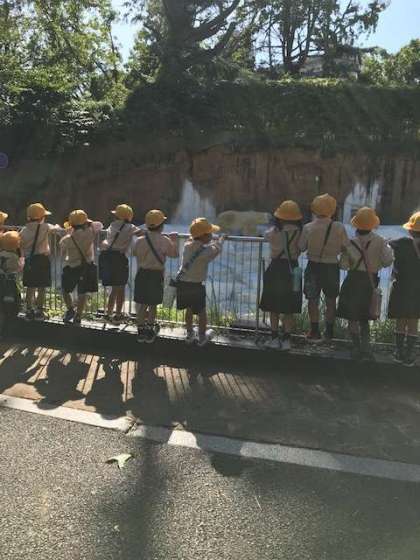 今日、1年生は天王寺動物園へ校外学習に行きました。午前中は、クマやサルを見ました。おいしいお弁当を食べてからは、サバンナにいる動物を見に行きました。どの動物にも、子どもたちは気づいたことや感じたことがあったようで、友だちと楽しそうに話していました。初めての電車移動でしたが、マナーを守って行動することができました。同じ電車に乗っていた、他のお客さんからは、電車を降りた際に「本当に静かでかしこいですね。感動しました。」と、お褒めの言葉をかけていただきました。今日の校外学習で、1年生はまた一つ成長することができました。