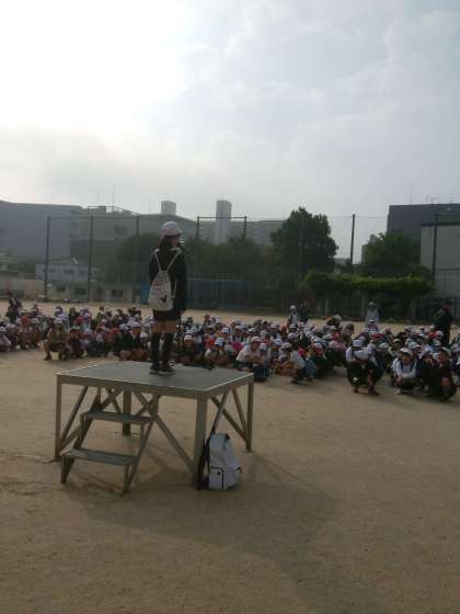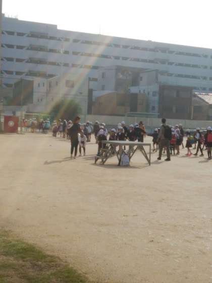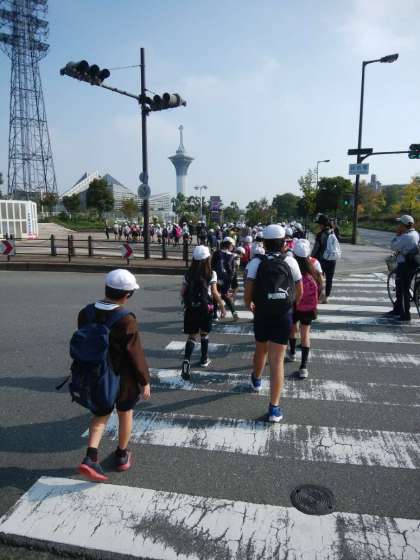 とてもいい天気でフォトロゲイニングが始まりました。始めの集いの後、東門、西門に分かれて鶴見緑地公園に出発しました。