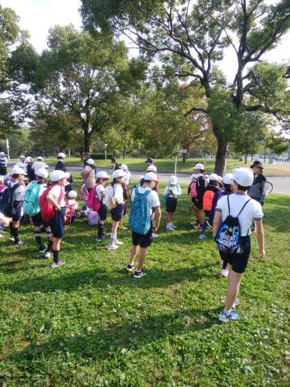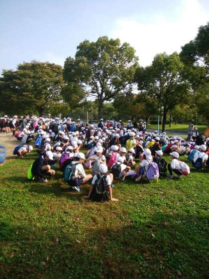 無事鶴見緑地公園に到着しました。トイレ休憩後フォトロゲイニングに出発します。PTA学級給食と成人教育のみなさんも子どもたちの見守りのため、鶴見緑地公園に来て頂いています。ありがとうごさいます。