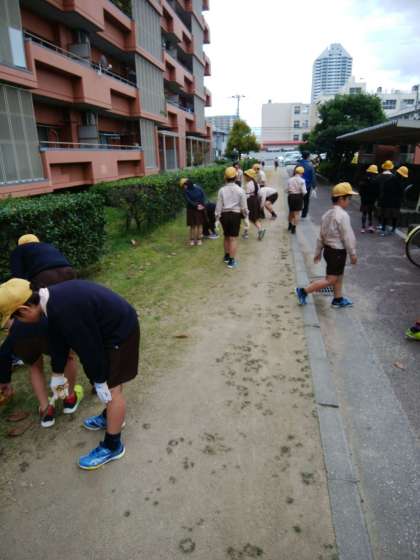 3年は、鶴見北公園・4年は、鶴見北住宅の歩道付近を掃除しました。