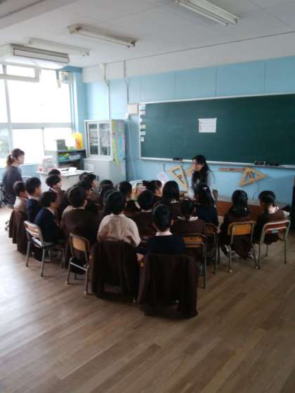 三時間目は2組でした。2組さんも静かに聞き入っていました。