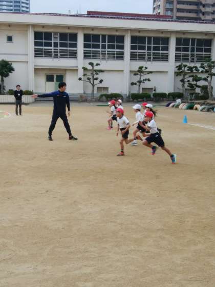 3年は2時間目に出前授業がありました。ミズノスポーツの和田木さんに来ていただき、走り方について教えていただきました。鬼ごっこなどで体をほぐした後、走り方を学習しました。速く走るためには、姿勢をよくして、腕をしっかり振り、つま先で走ることが大切だそうです。