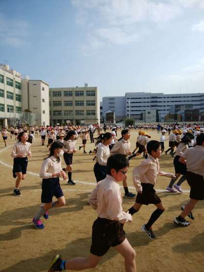 今日から「かけあしタイム」が始まりました。二時間目と三時間目の間の休み時間に行います。諸注意と準備運動後、グランドを走りました。子どもたちは自分のペースを守ってよく頑張っていました。
