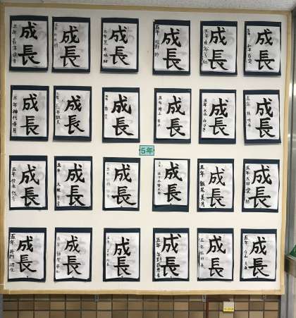 1月の玄関掲示は、5年生の習字「成長」です。今年は、6年生になる年。最高学年としてさらに成長していこう・・・そんな思いが、字に表れています。