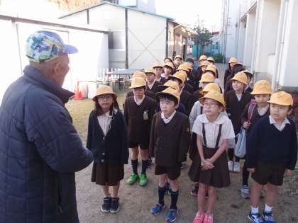 2月4日、3年生が七輪体験をしました。七輪に入れた炭に、地域の方が火をつけてくれました。