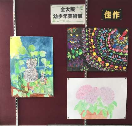 3月の玄関掲示は、全大阪幼少年美術展の佳作、努力賞の作品です。子どもらしい思いが表現された作品です。早くたくさんの子どもたちに見てもらいたいと思っています。