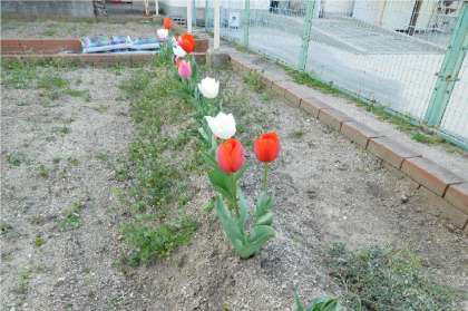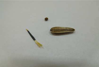 四月の学校にはさくら、チューリップなど、たくさんの花がさいていました。三年生の学しゅう園には、ホウセンカ・マリーゴールド・ひまわりの種をまきました。三まい目のしゃしんはそれぞれのたねです。どれがどのたねなのか教科書でしらべてみましょう。