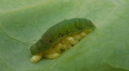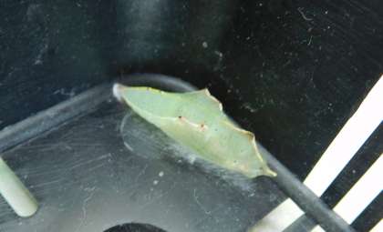チョウの幼虫(ようちゅう)をかいはじめてから一週間ほどたちました。モンシロチョウの幼虫は皮をぬいで(だっぴといいます)大きくなりました。また、さなぎになったものもいます。しかし、さなぎになれなかった幼虫もいます。コマユバチという虫がモンシロチョウの幼虫の体にたくさんのたまごをうみつけます。たまごからかえったたくさんのコマユバチの幼虫は、モンシロチョウの幼虫を食べてしまうのです。少しこわいかもしれませんが生きものが、一生けんめいに生きていくためのすがたです。