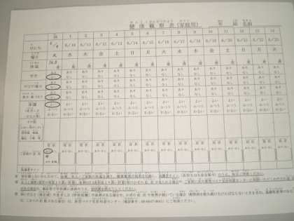 また昨日、新様式の健康観察表を配布しました。明日からの使用になりますが、ご家族の状況の記入や保護者の方のサインが必要になっています。大変お手数をおかけいたしますが、ご理解・ご協力の程よろしくお願いいたします。
