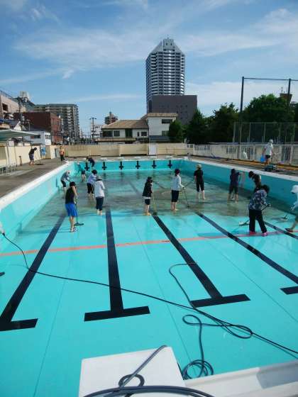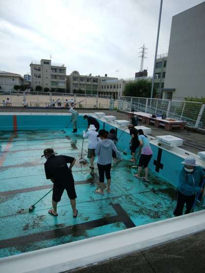 今日プール清掃をみんなで行いました。今年は、5・6年だけのプールですが、少しでも泳ぐ力が伸びてくれることを願っています。