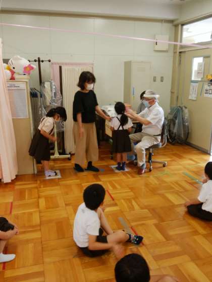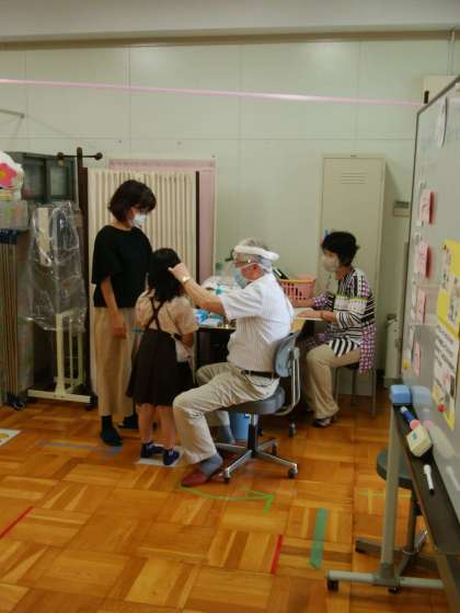 今日お昼から校医の藤村先生に来校していただき、耳鼻科検診を行いました。