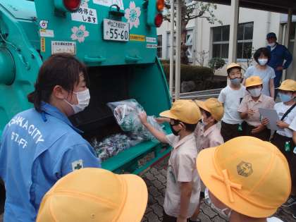 7月7日に城北環境事業センターの方に来ていただき、パッカー車体験をしました。
