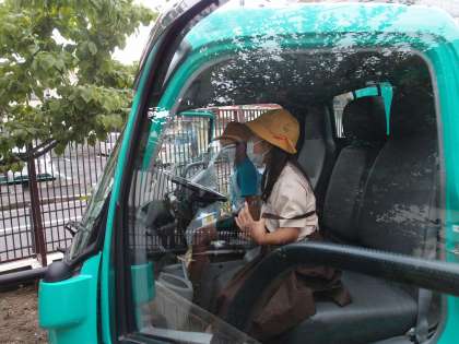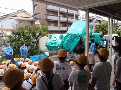 実際にごみを車に投入したり、運転席や助手席に乗せてもらったりして、子どもたちはいきいきとしていました。