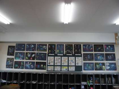 指を使ってクラゲをかいたり、パスを使って海の生き物をかいたりしました。