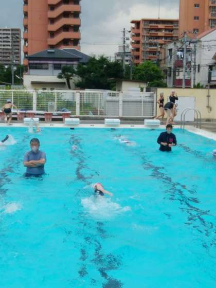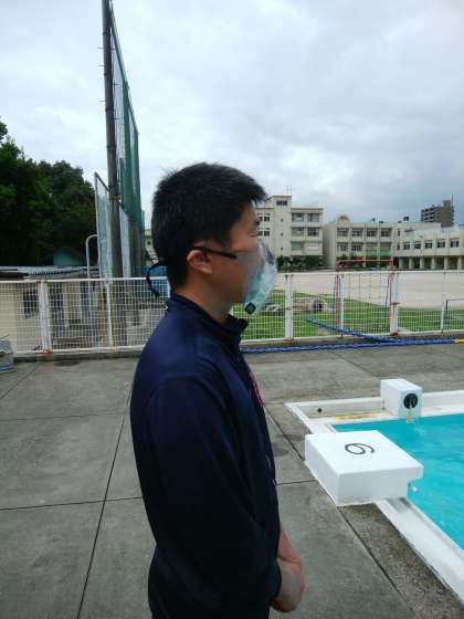 本日6年1組のプールがありました。以前に指導者用マスクを頼んでいました。それがやっときたので、さっそく付けて指導しました。