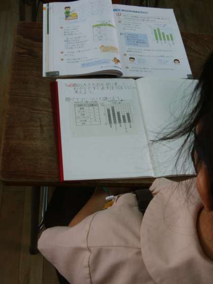 3年は現在、算数の時間において2クラスを3つに分けた少人数で授業をしています。今日はぼうグラフの良さについて学習しました。