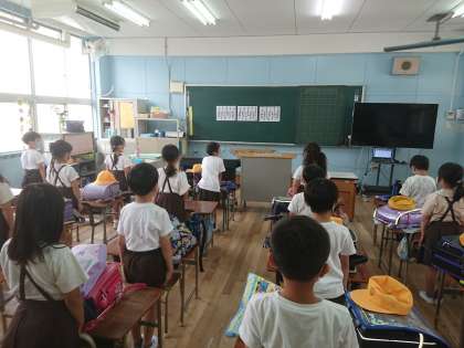 一年生は初めての終業式でした。放送でしたがしっかり話を聞き、頑張っていましたよ。