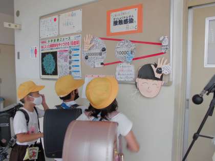 この前の保健指導で使った教材をアレンジして、保健室横に掲示しました。