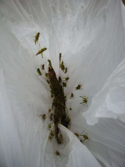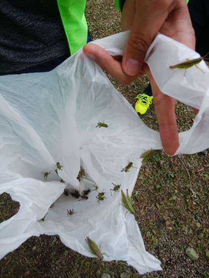 虫探しをした子どもたちが短時間でたくさんの虫を捕ってきました。