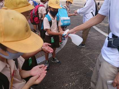 科学館に着きました。館の方から消毒液を渡され消毒して入館しました。