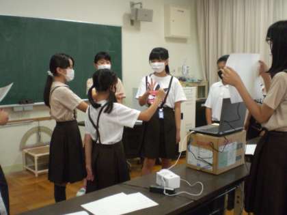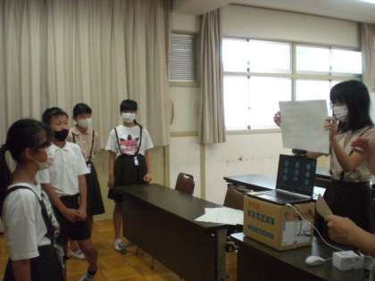 多目的室からwebカメラを使い、教室のみんなにジャンケンの勝者を予想してもらいました。初めての児童からの配信でしたが、機器の扱いや進行のうまさに感心しました。