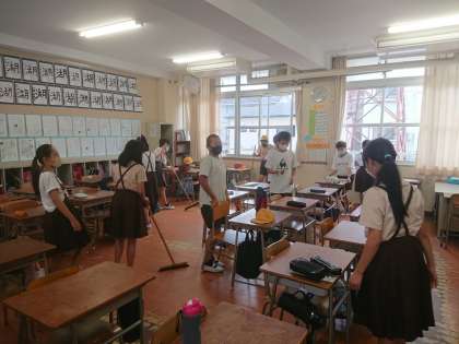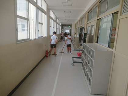 二階を歩いているとせっせと掃除をしている子ども達を見かけました。みんなひたむきにやっていましたよ。