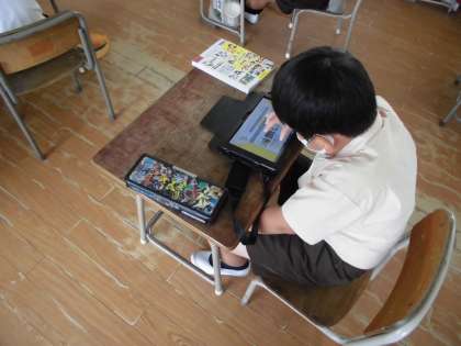今日は、キッズプラザの館内の様子や感染対策について、児童一人ひとりが、タブレットをつかって調べました。