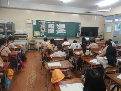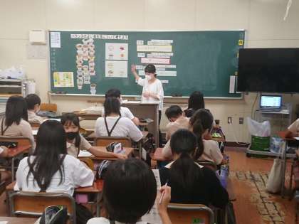 二、三時間目他校から栄養教育の先生が来られて栄養指導がありました。