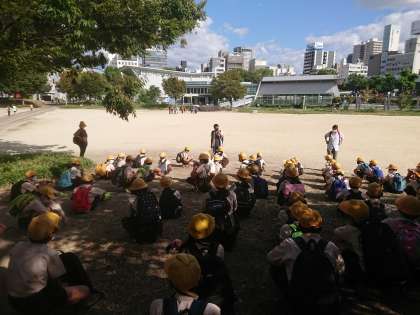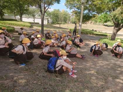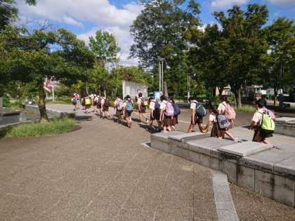 扇町公園で合流しました。今から鶴見小学校に帰ります。
