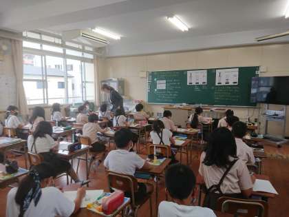今日は理科の授業研究が四年でありました。写真のように空気をしたに押すと魚が・・・。縮んだ魚を見て子どもたちは大歓声。