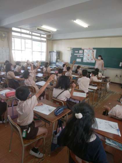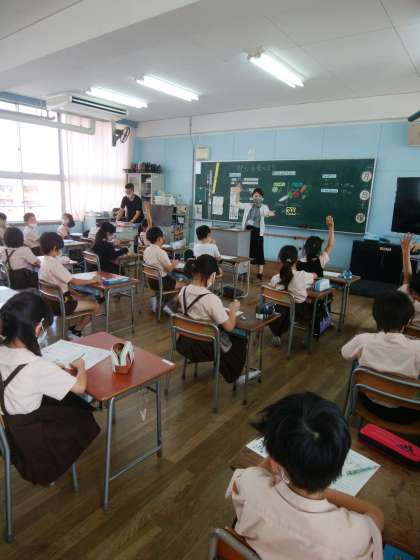 3年は本日茨田小学校の吉見先生に来ていただき、「野菜を食べよう」というテーマで野菜の働きについて学習しました。