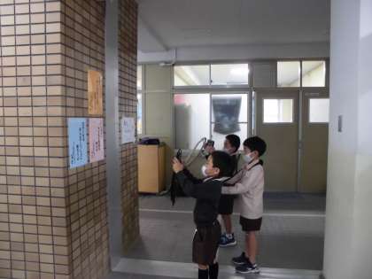 そして、身のまわりにある長方形や正方形、直角三角形をさがし、タブレットに記録しました。