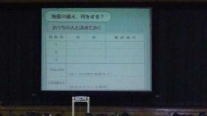 防災担当の方からは、避難袋の準備、家具などの転落防止、地震の備えについて
