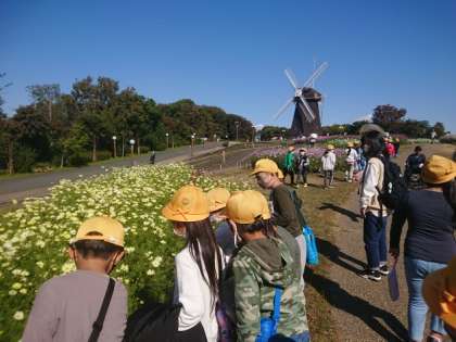 きれいな景色に、バッタやキリギリス、ドングリなどに子ども達のテンションも上がっています。