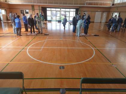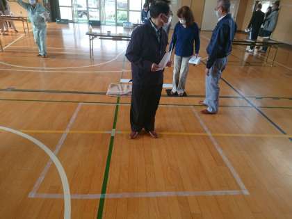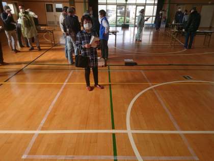 実際に避難所を開設した場合、これまでは4?(写真一枚目白わく)だったのがコロナ禍では6?(写真2枚目白わく)と広くなり、当然収容人数も減ります。鶴見区でも今年度に入って避難所を増設したそうです。