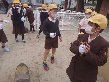 3年生は北公園です。落ち葉をたくさん拾いました。