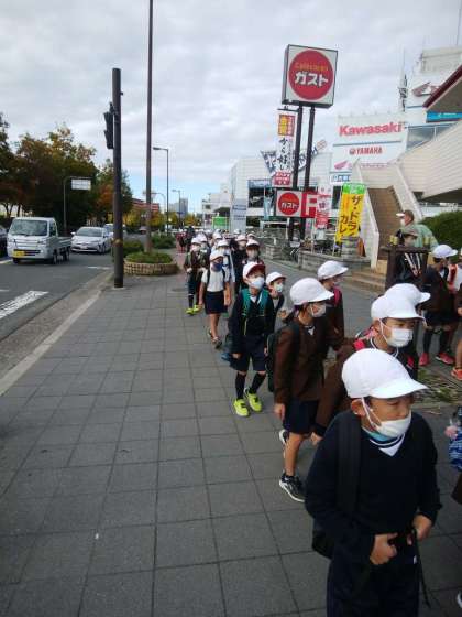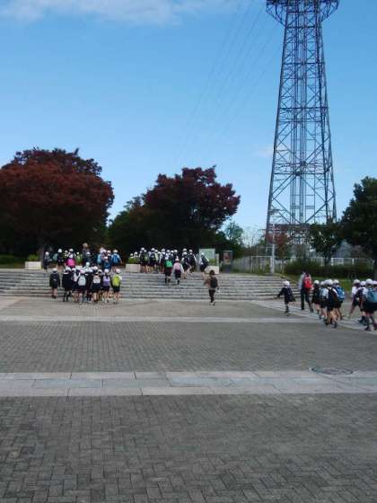 学校を出発して、無事鶴見緑地公園に到着しました。